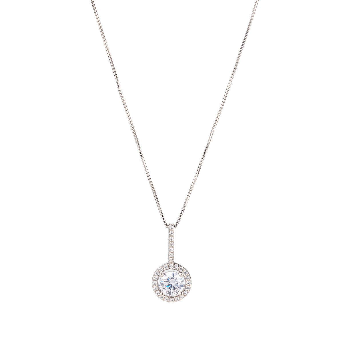 This sterling silver pendant features a dazzling round cluster of cubic zirconia stones, intricately arranged to create a luxurious sparkle. The elegant design captures the essence of timeless beauty, making it a perfect accessory for both everyday wear and special occasions. Its radiant brilliance adds a touch of sophistication and glamour to any outfit.