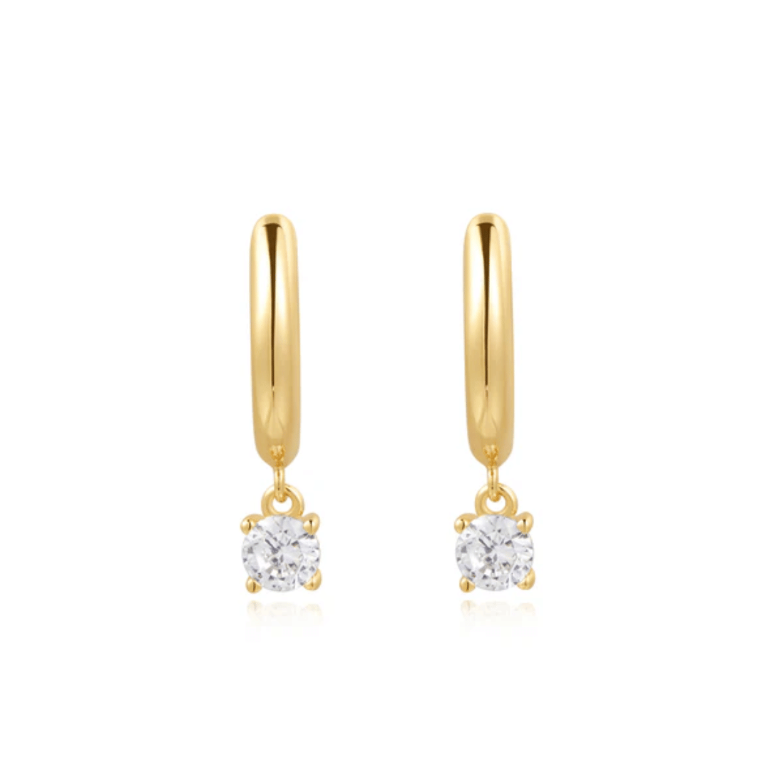 Renew your everyday earring stacks with our drop solitaire huggies. Each of the sleek piece features a single droplet of a cubic zirconia stone, perfect for commuting in style. Pair yours with simple studs or hoops to complete the look.