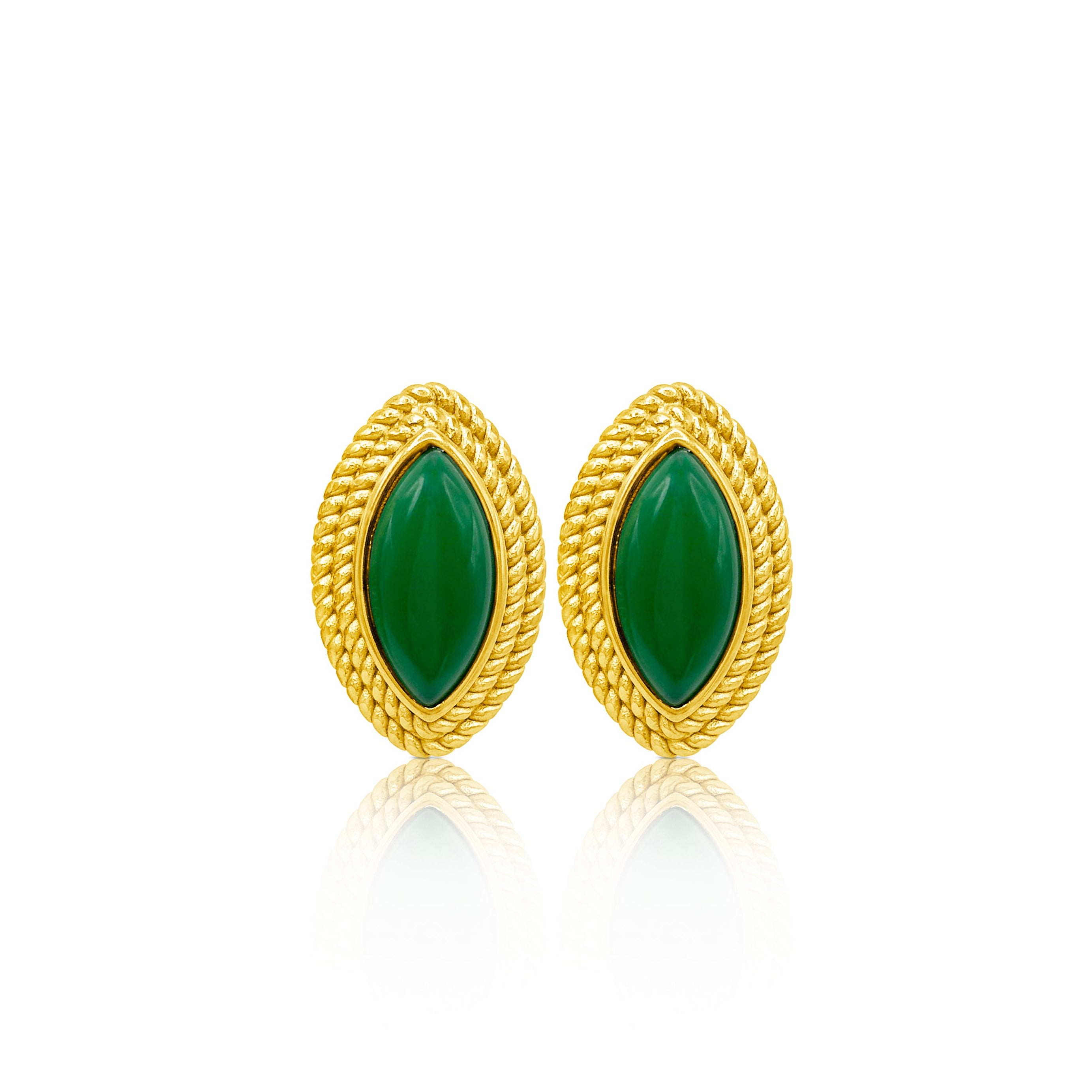 Elegant and timeless, the Emerald Marquise Studs feature a rich green marquise stone framed by a textured, rope-style border. The bold pop of colour paired with the vintage-inspired detailing creates a refined statement that elevates both everyday looks and evening outfits. Striking without feeling overpowering, they’re a beautiful way to introduce colour into your jewellery collection.