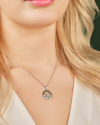 9ct Gold Cz Rimmed Malachite Flower Pendant