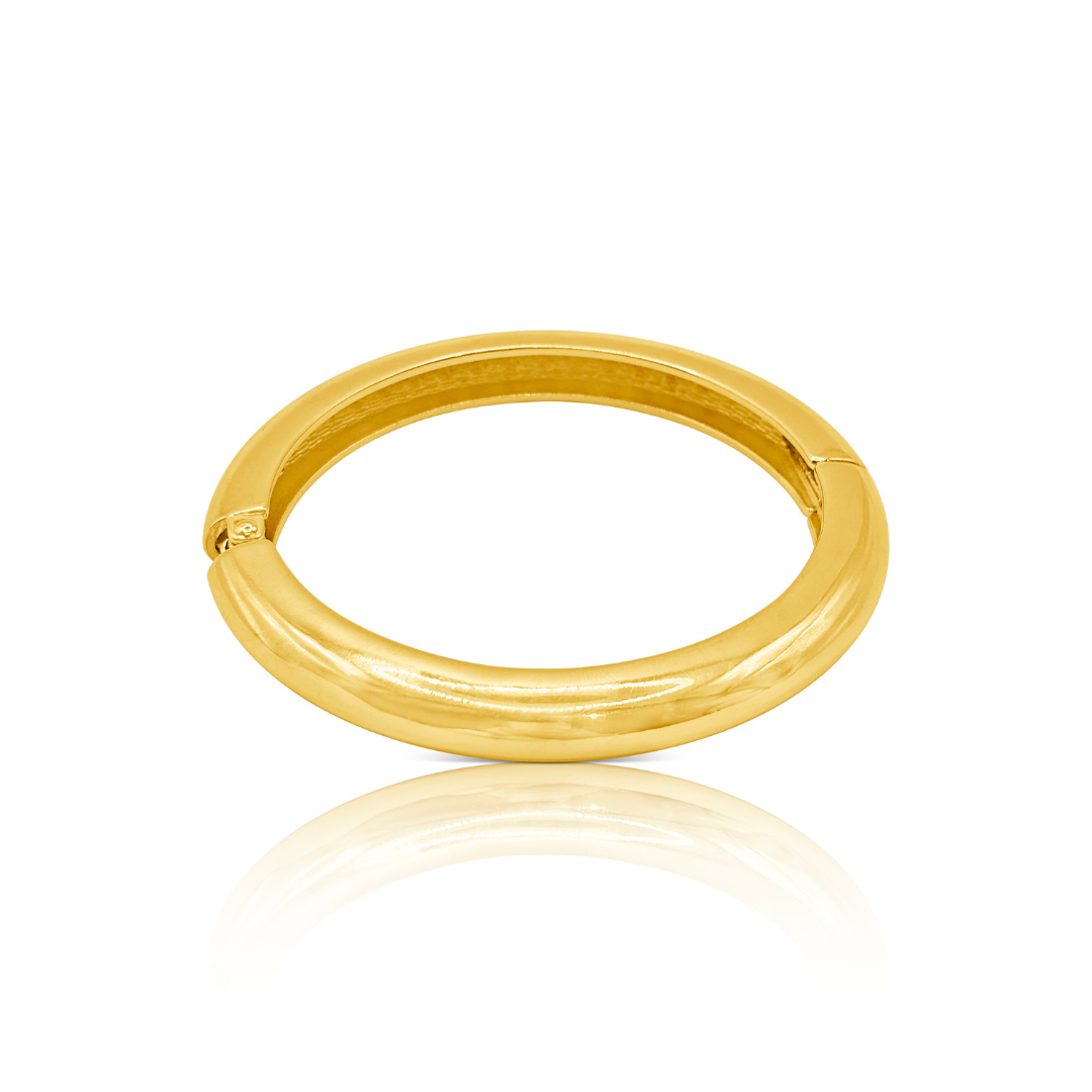Chic and timeless, this gold-plated bangle features a smooth, rounded design that embodies understated elegance. With its polished finish and solid, seamless shape, it’s a versatile piece that adds a refined touch to any outfit. Wear it solo for a sleek, minimalist look or stacked with other bangles for effortless style.