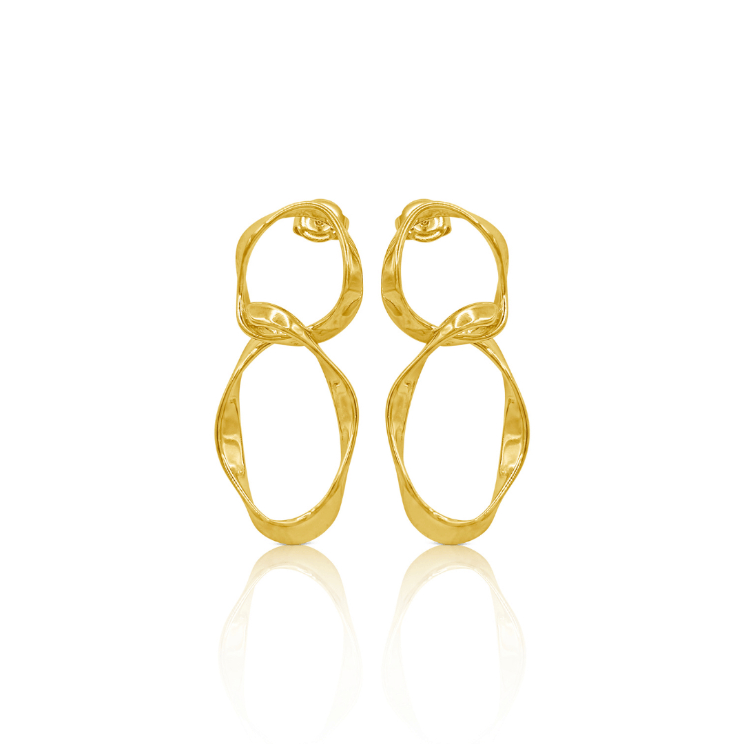 Modern and eye-catching, these earrings feature two fluid, sculpted loops intertwined to create a soft, organic silhouette. Their lightweight design gives beautiful movement, catching the light with every turn for an elegant yet contemporary finish. Perfect for elevating everyday looks or adding a refined touch to evening outfits, they’re a versatile statement you’ll reach for time and time again.