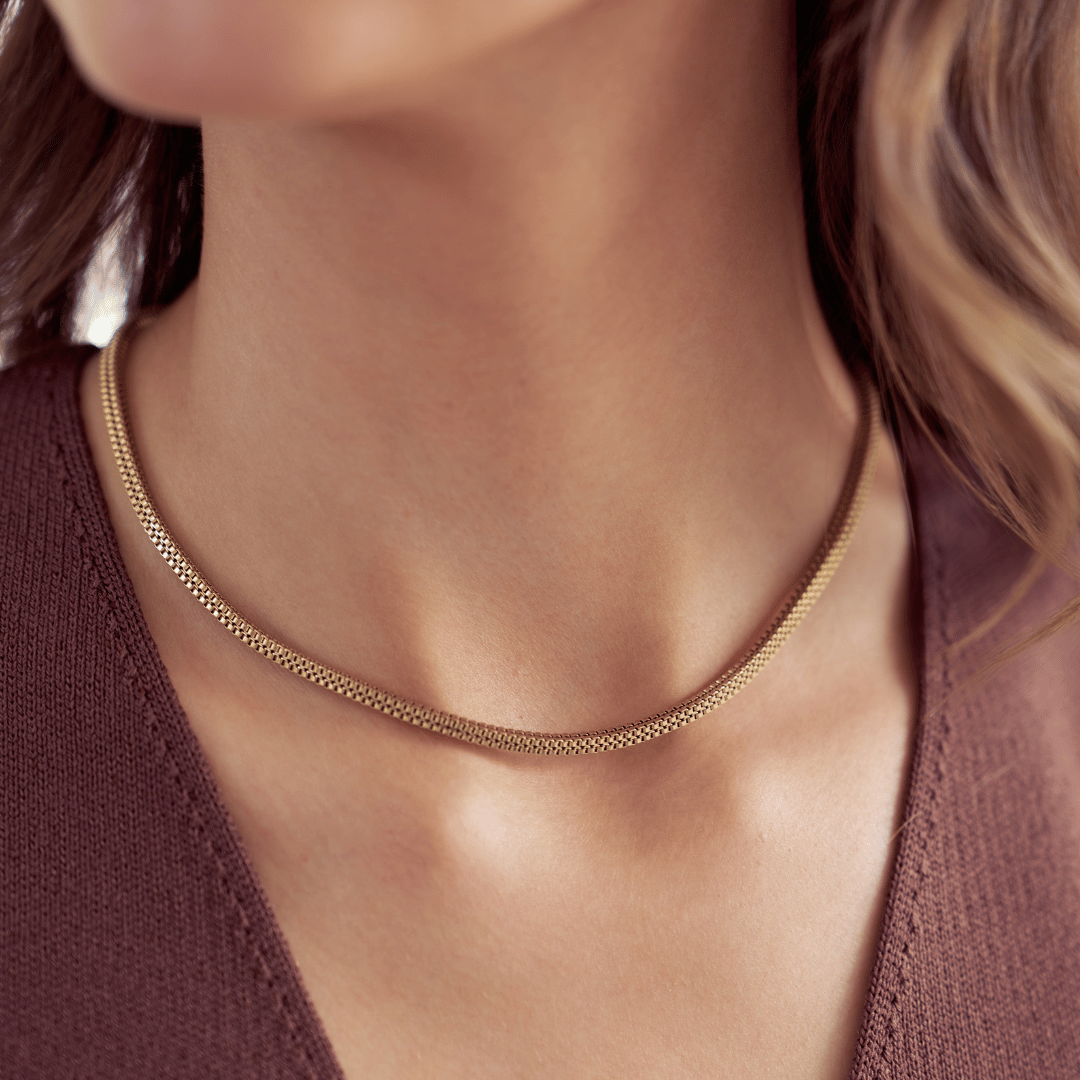 Sleek and timeless, this gold-plated necklace features a tightly woven rope-style chain that adds subtle texture and sophistication. Lightweight yet durable, it’s perfect for everyday wear, striking the right balance between classic and contemporary. Wear it solo for a polished look or layer it with your favourite pieces for effortless style.