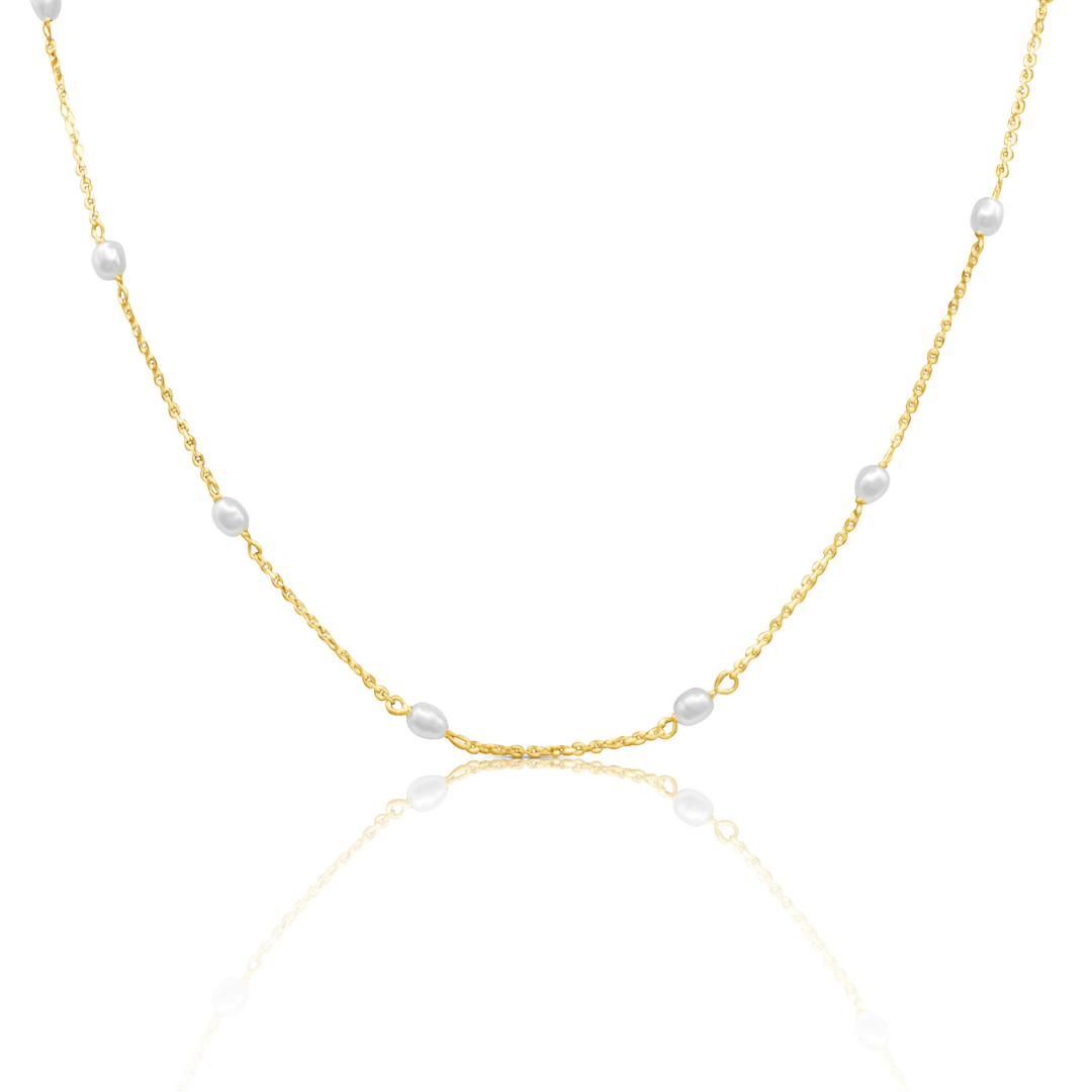 Delicate and timeless, this 9ct gold necklace features a fine chain adorned with lustrous freshwater pearls spaced elegantly along its length. The perfect balance of classic and contemporary design, it adds a soft touch of sophistication to any look. Beautiful worn alone for subtle elegance or layered with other fine gold chains, this piece is designed to be cherished for a lifetime.