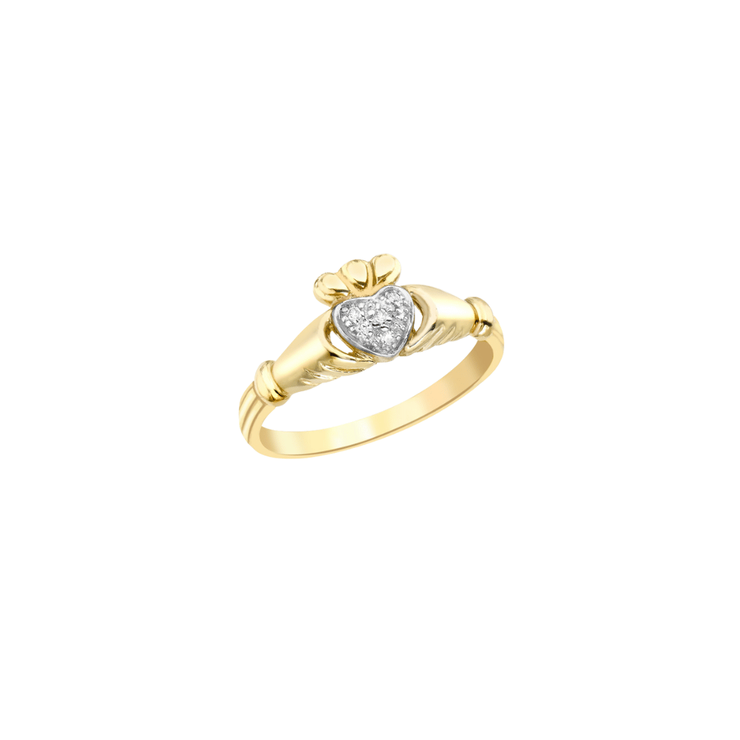 9ct Gold Dainty Diamond Claddagh Ring