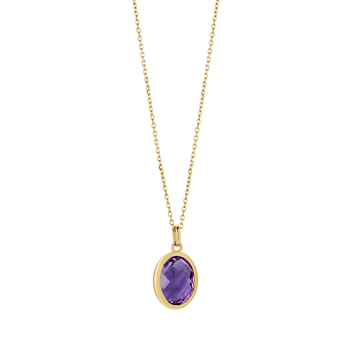 This 9ct gold pendant features a genuine amethyst gemstone in a refined briolette oval cut. The rich purple hue of the amethyst contrasts beautifully with the warm tones of 9ct gold, creating a timeless and sophisticated look. Perfect for adding a touch of colour and elegance to any outfit, this pendant is an exquisite choice for both everyday wear and special occasions.