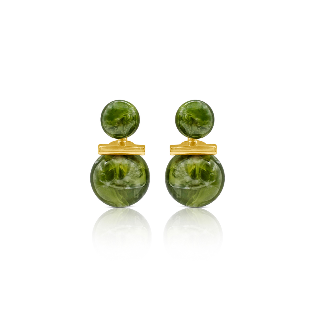 These bold green geometric stud earrings are a true statement piece, featuring smooth, rounded shapes that create a modern yet artistic look. The rich green marbled effect adds a unique pop of colour, while the clean circular silhouette brings balance and contemporary elegance. Perfect for adding a touch of vibrancy to any outfit.