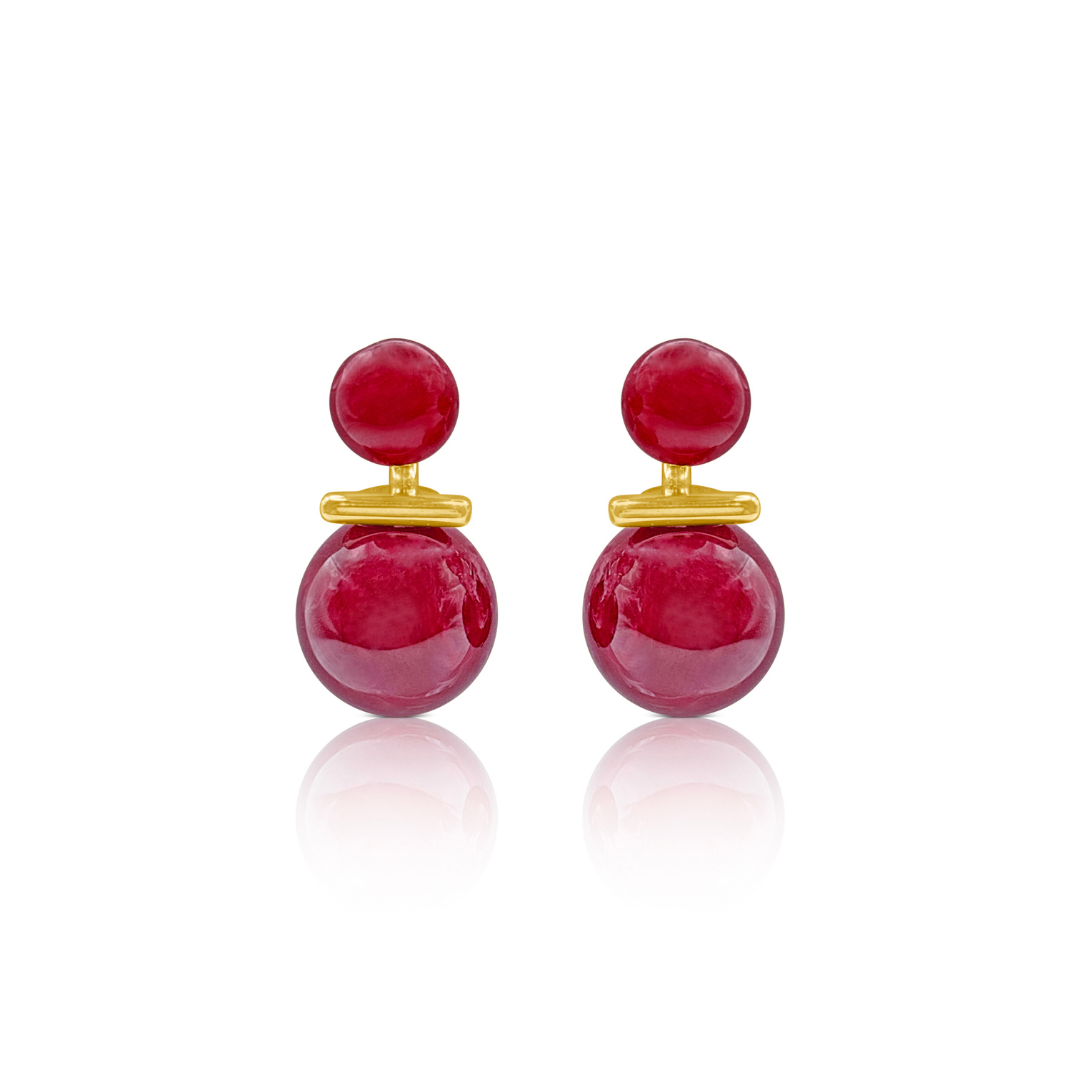These vibrant red geometric stud earrings are a stunning statement piece, featuring smooth, rounded shapes that create a bold yet refined look. The deep red marbled finish adds a striking pop of colour, while the clean circular silhouette brings balance and contemporary elegance. Perfect for adding warmth, vibrancy, and modern style to any outfit.