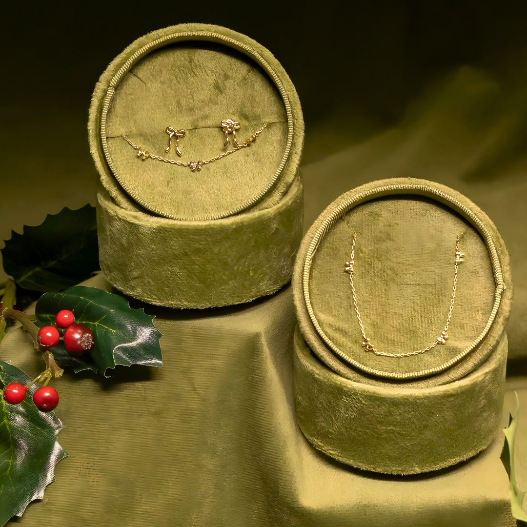 The Festive Mini Bow Set features three delicate Gorjana favourites, thoughtfully curated to bring a soft, feminine touch to the festive season. With their signature bow detailing, each piece adds a playful yet refined elegance to any jewellery collection.