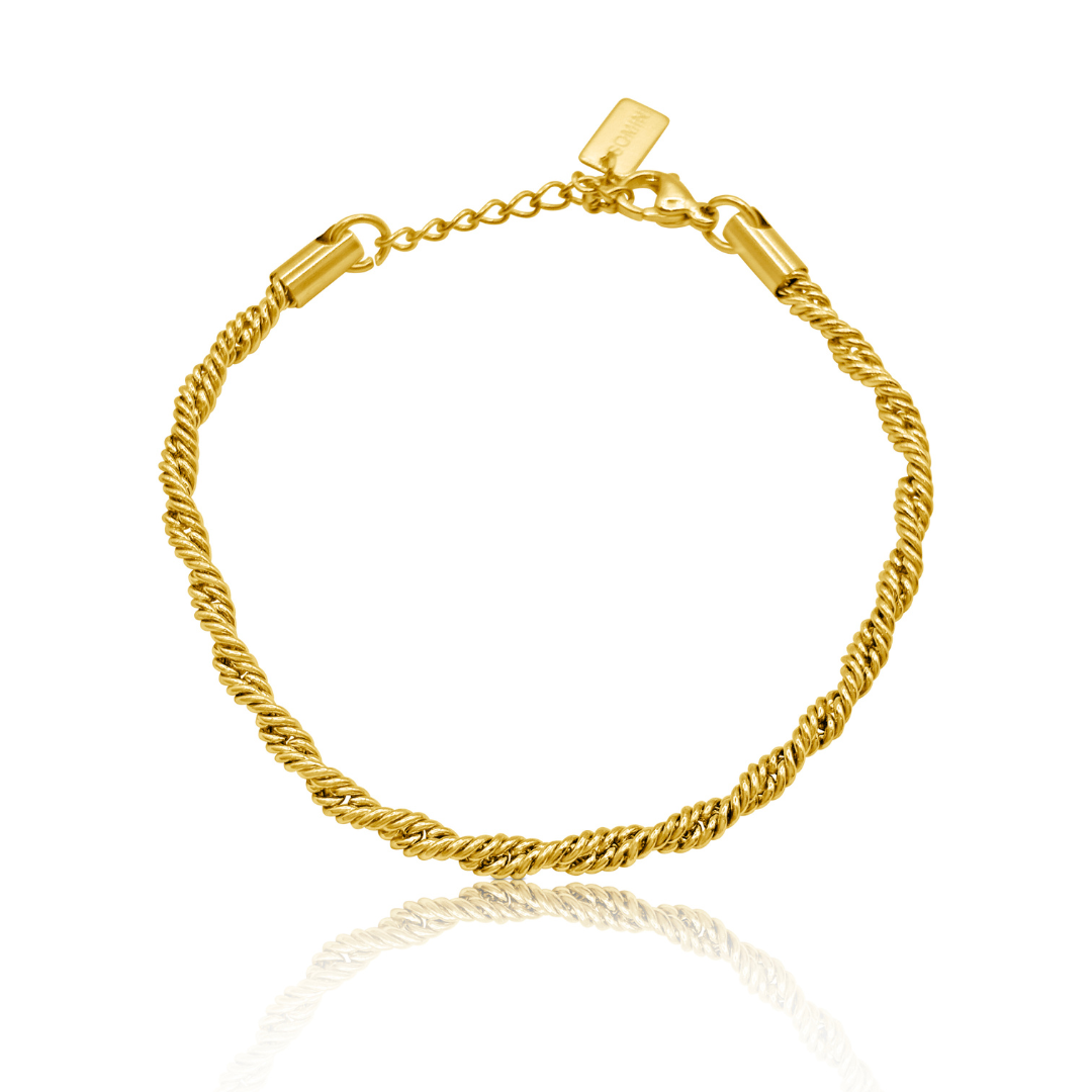 Elegant, timeless, and endlessly wearable, our Gold Twisted Rope Bracelet adds a touch of classic sophistication to any look. Its beautifully twisted rope design catches the light with every movement, creating a soft, luxurious shine. Perfect worn solo for a refined finish or layered with your favourite bracelets for a chic stacked style, this piece is a must-have staple for any jewellery collection.
