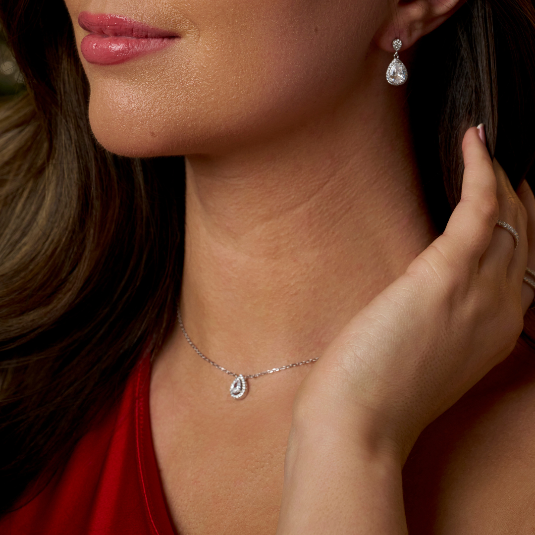 Embrace timeless elegance with our Silver Teardrop Sparkle Pendant. Featuring a beautifully cut cubic zirconia stone framed in a delicate teardrop halo, this pendant catches the light effortlessly, adding a subtle yet stunning shimmer to any look. Whether worn every day or saved for special occasions, it brings a refined touch that makes you feel effortlessly polished.